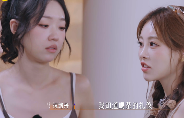 在猜测的过程中,祝绪丹、管乐、罗予彤、李艺彤、vava共同商量,祝绪丹表示:茶艺师肯定知道一些喝茶的礼仪,我知道喝茶的礼仪,听到祝绪丹的话,管乐立即问:是什么?然后祝绪丹就做出喝茶的动作,看到祝绪丹的动作,管乐立即说:你古装戏拍多了吧?